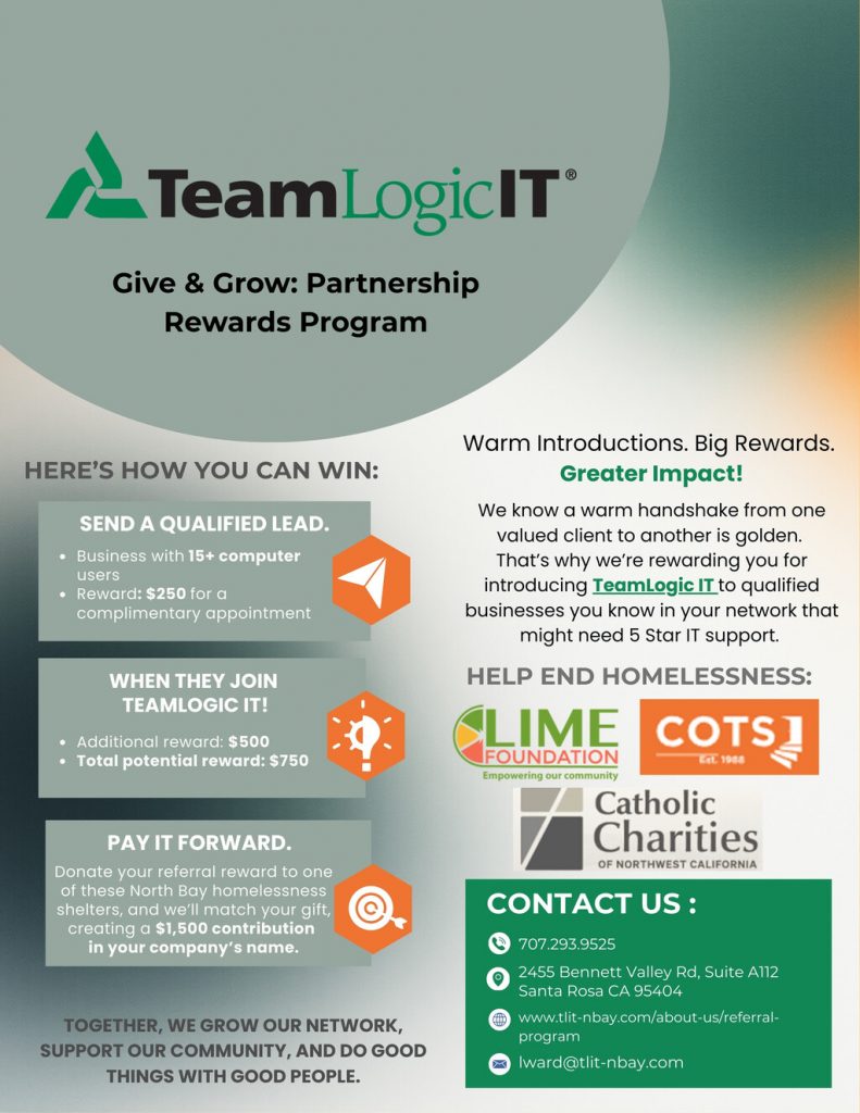 At TeamLogic IT North Bay of San Francisco, one of our goals for 2026 is to take a more philanthropic approach throughout the year. We are committed to supporting local nonprofits and strengthening our North Bay community through meaningful service and partnerships.